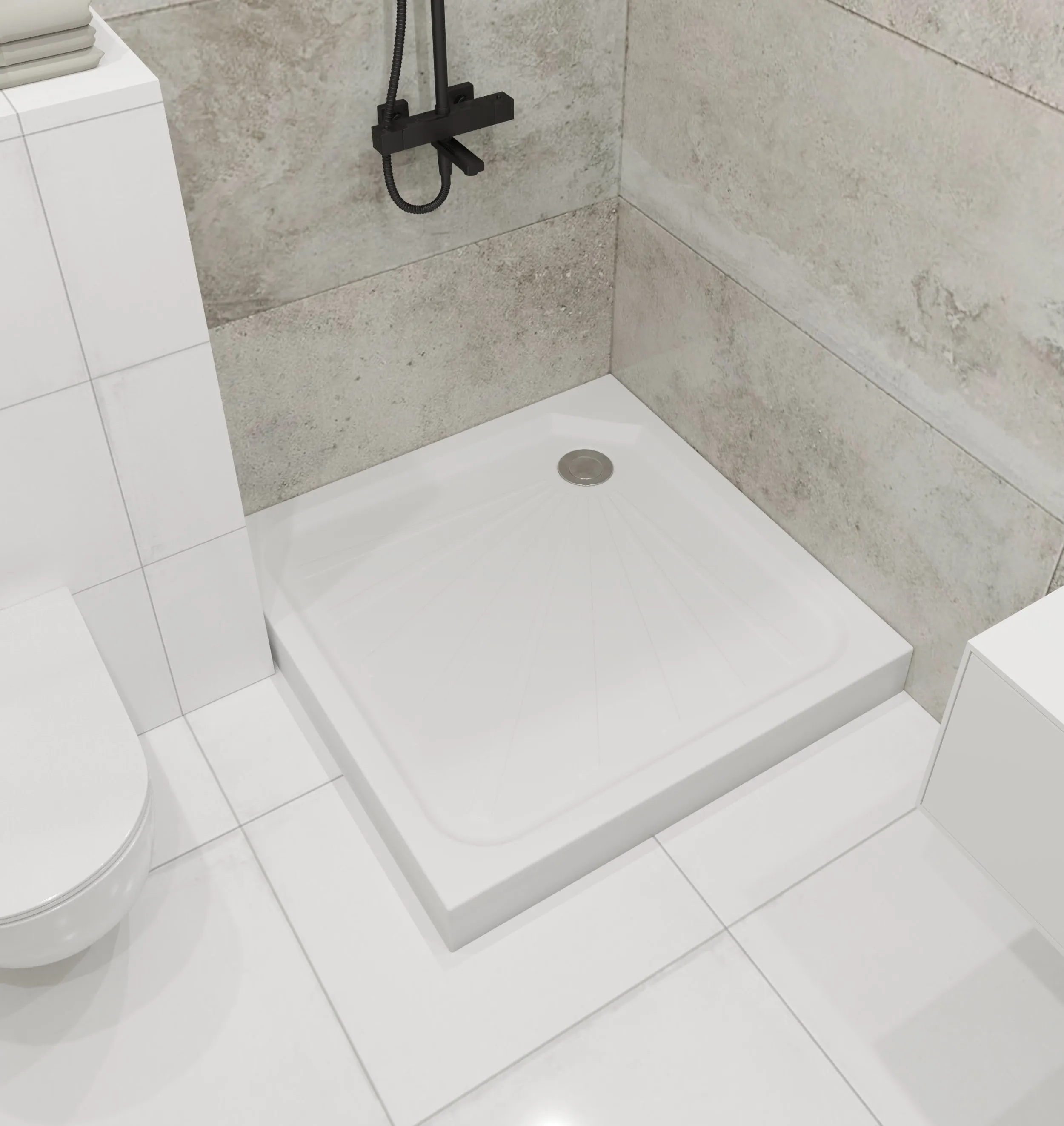 Акриловый душевой поддон – прекрасное решение для небольших ванных комнат. Квадратная форма универсальна для создания стильного гармоничного интерьера. Небольшой уклон в сторону слива и закругленные грани поддона позволяют эффективно стекать воде и предотвращать ее переливание через борт.Характеристики: