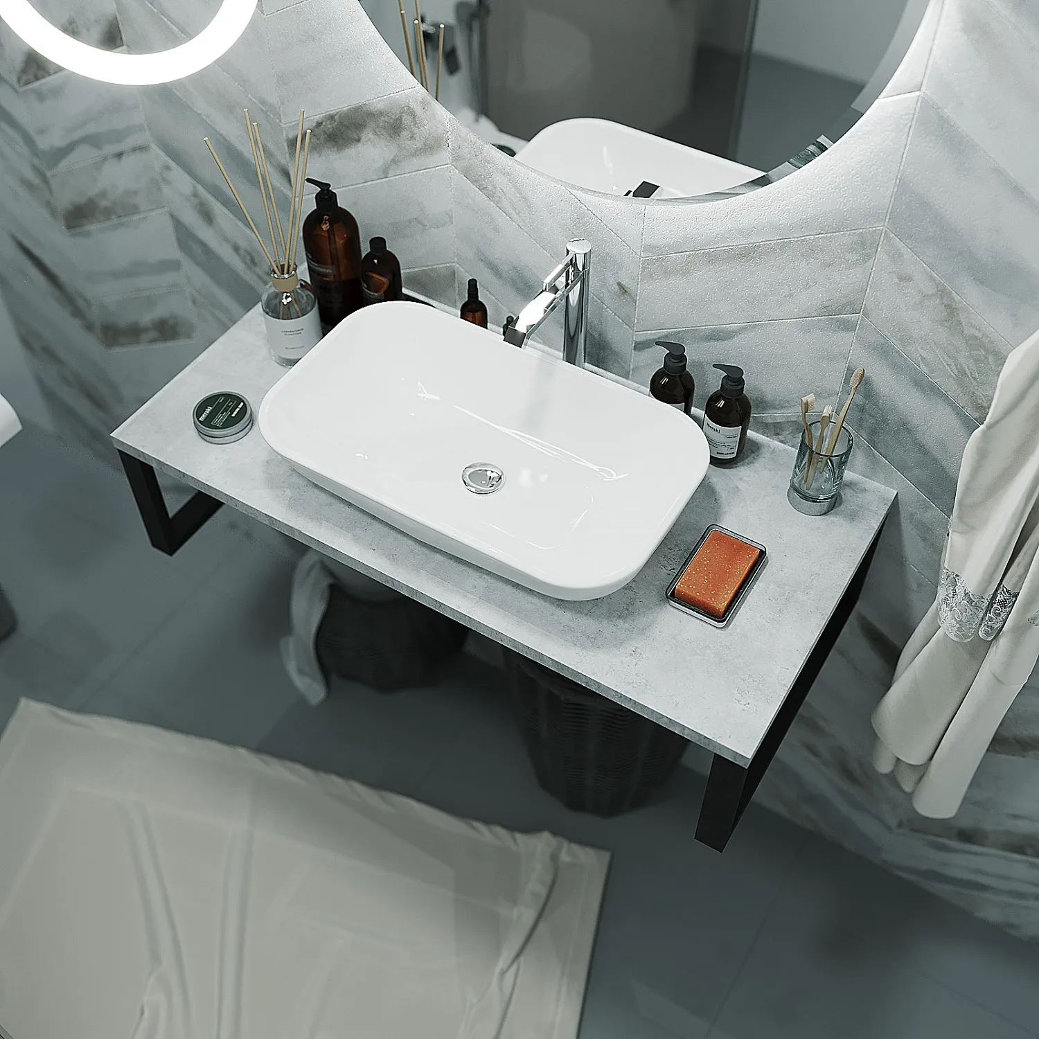 Функциональная и стильная столешница в востребованной и актуальной стилистике LOFT. Минималистичная и одновременно эффектная, она изготовлена в универсальной прямоугольной форме и дополнена такими практичными деталями, как металлические кронштейны, которые можно использовать в качестве рейлингов. Столешница выполнена из проверенных материалов, прекрасно защищена от воздействия влаги, не склонна к появлению сколов, царапин, трещин и других дефектов. Она подойдет для ванных комнат любых размеров и практически любой цветовой гаммы - от сдержанной до яркой и насыщенной.