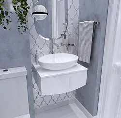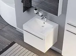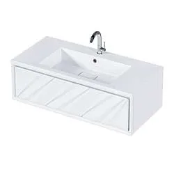 Подвесная тумба Delta — глоток свежести и легкости для ванной комнаты. Ручка в форме треугольного выпила добавляет загадочности модели.