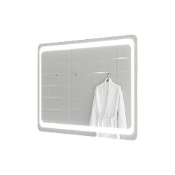 Зеркало, выполненное на стыке классических и современных решений в дизайне аксессуаров. Оно имеет традиционную форму прямоугольника с мягкими краями, которая подчеркивается дублирующим ее рисунком, выполненным методом художественного матирования. Мягкий свет, излучаемый по всему периметру зеркала, не только делает более удобным его ежедневное использование, но и позволяет создавать в ванной комнате особенно уютную атмосферу. Для изготовления зеркала используется французское или бельгийское зеркальное полотно на основе серебряной амальгамы, что значительно увеличивает срок службы модели.Характеристики: